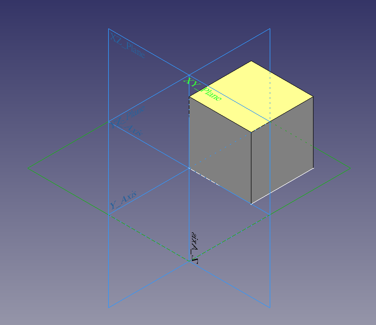 Length is handled internally as mm by FreeCAD, so this "unit cube" serves as a useful basis for testing behavior.